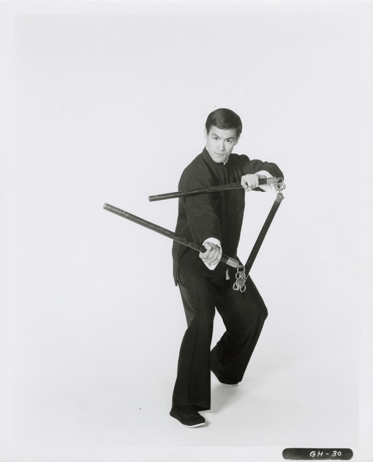 Favorite this☆ Bruce Lee Description: Portrait of actor Bruce Lee, performing martial arts. Lee poses with a three-section staff. Handwritten on back: "Bruce Lee, Kato." Details Resource ID: bh022457 Subject: Lee, Bruce, 1940-1973 Asian American actors Martial arts weapons Photographic prints Format: 1 photographic print ; 10 x 8 in. Member of: Burton Historical Collection Filing Location: MS/Trendle, George, 61:7 Rights: Physical rights are retained by DPL. Copyright is retained in accordance with U.S. copyright laws.