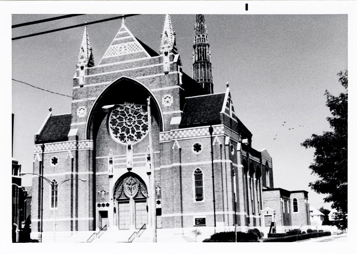 View of the St. Florian Catholic Church in Hamtramck, Michigan. Handwritten on back: "St. Florian Church, Hamtramck. 8-26-77."
