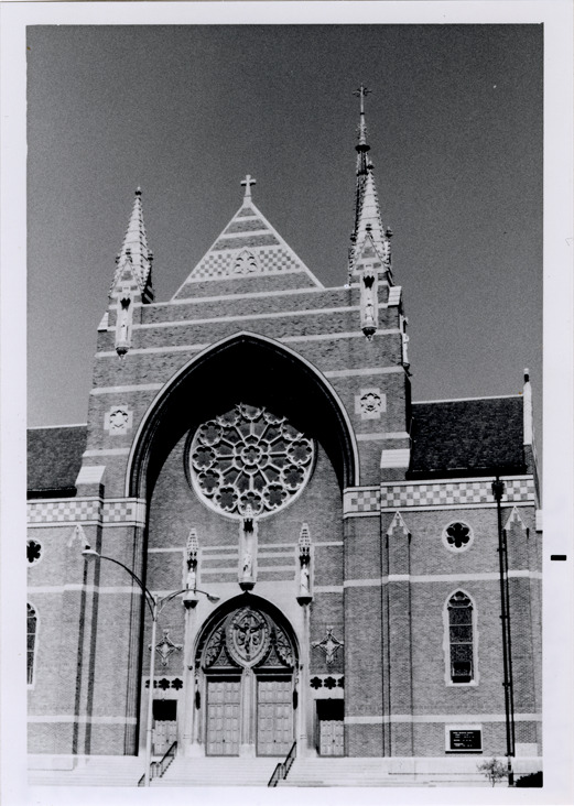 View of the St. Florian Catholic Church in Hamtramck, Michigan. Handwritten on back: "St. Florian Church, Hamtramck, Mich. 8-26-77."