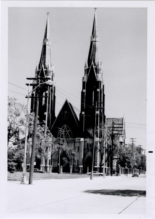 View of the Sweetest Heart of Mary Church. Handwritten on back: "Sweetest Heart of Mary Church, Detroit. 8-26-77."