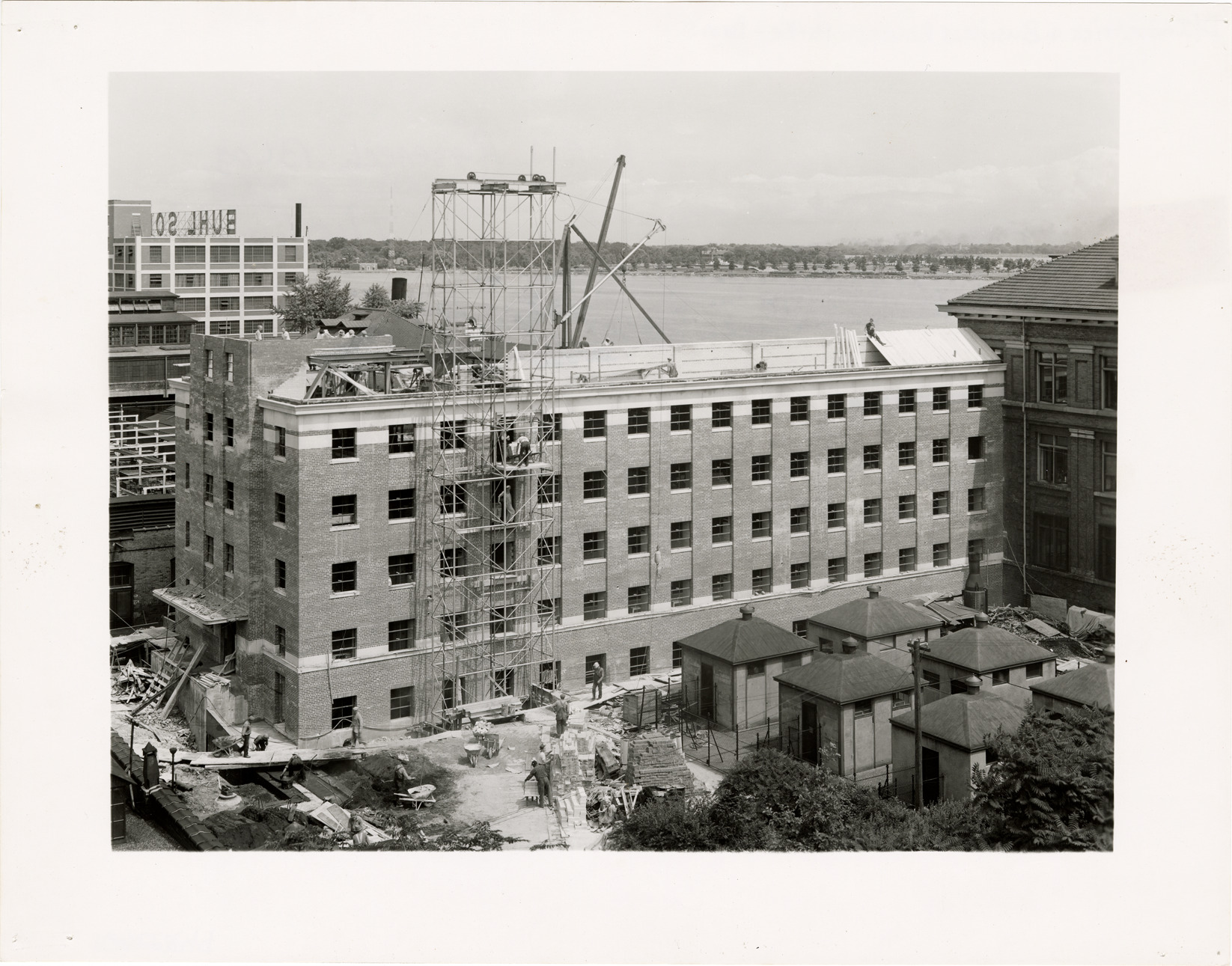 Favorite this☆ Research Building during construction, Parke, Davis & Company Description: View of the Parke, Davis & Company Research Building during construction. Handwritten on back: "New Research Bldg., 7/15/40." Details Resource ID: bh022651 Subject: Laboratories--Michigan--Detroit--Design and construction Parke, Davis & Company Pharmaceutical industry--Michigan--Detroit Photographic prints Date Issued: 1940-07-15 Format: 1 photographic print ; 8.5 x 11 in. Member of: Burton Historical Collection Filing Location: D/Industries and business houses-Parke Davis Rights: Physical rights are retained by DPL. Copyright is retained in accordance with U.S. copyright laws.