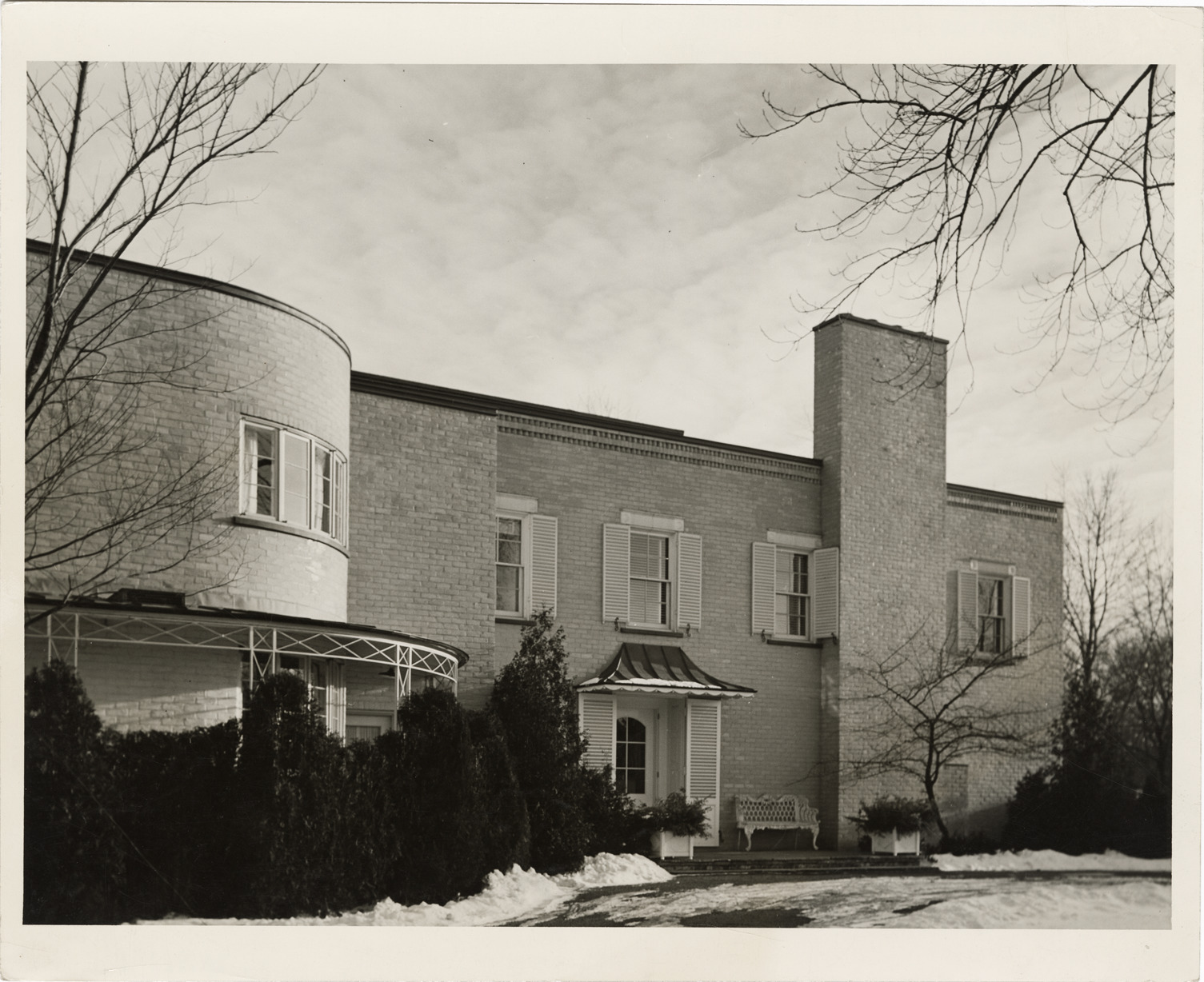 View of the Herbert B. Trix residence in Grosse Pointe, Michigan, designed by architect Hugh Keyes. Typed on back: "Hugh Keyes, architect. 748 Free Press Bldg. Herbert B. Trix, owner." Stamped on back: "Photograph by Elmer L. Astleford." Handwritten on back: "Grosse Pte., Mich. Walter S. Trowall, bldr."