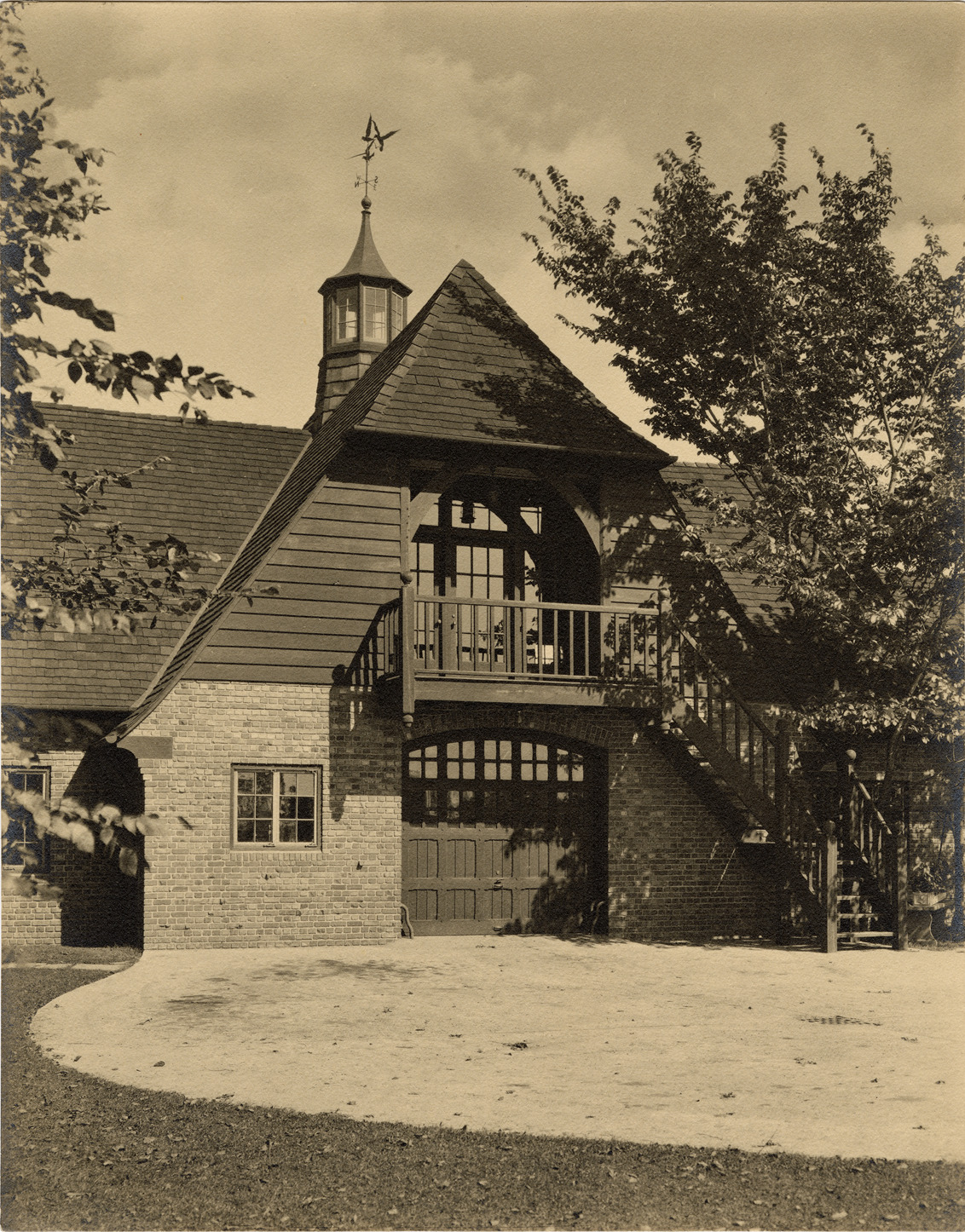 View of the Burns Henry residence in Grosse Pointe Farms, Michigan, designed by architect Hugh Keyes. Handwritten on back: "Burns Henry residence, Grosse Pte. Farms."