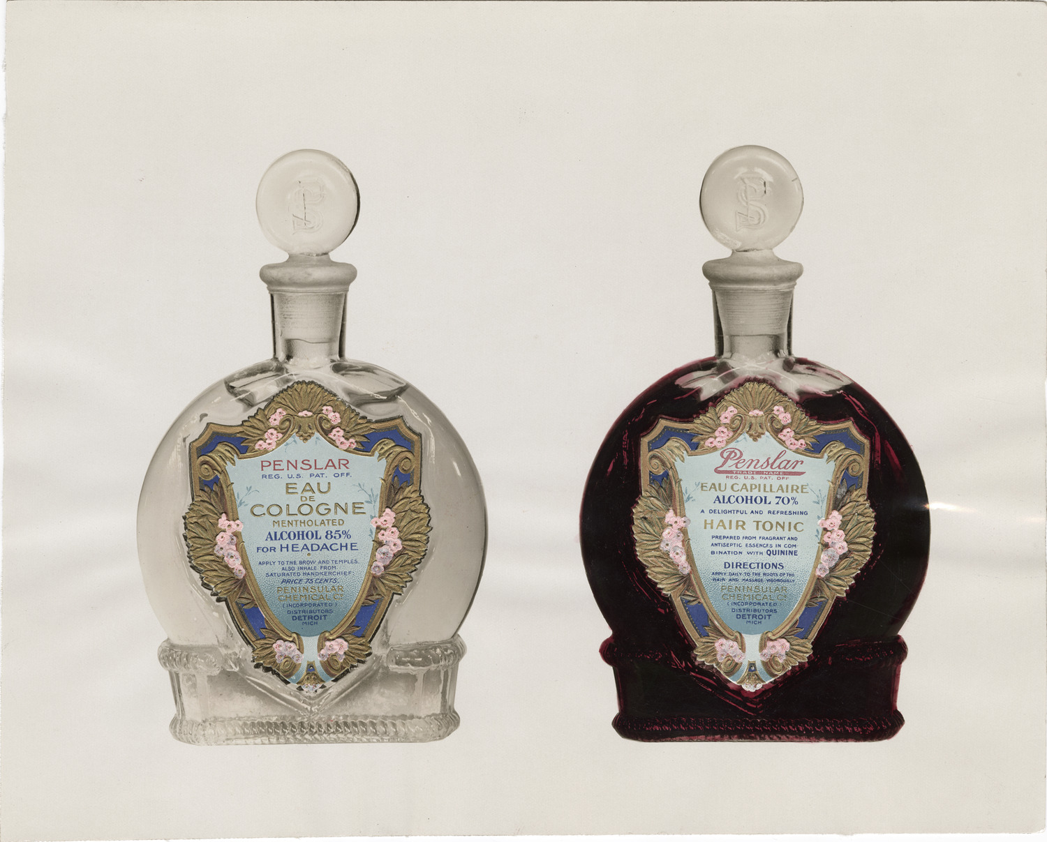 Favorite this☆ Penslar eau de cologne and hair tonic, Peninsular Chemical Company Description: View of bottles of Penslar eau de cologne and hair tonic, distributed by the Peninsular Chemical Co. Details Resource ID: bh022821 Subject: Perfumes--Michigan--Detroit Perfume bottles--Michigan--Detroit Hair preparations--Michigan--Detroit Peninsular Chemical Company Toilet preparations industry--Michigan--Detroit Photographic prints Date Issued: Unknown year Format: 1 photographic print mounted on fabric : col. ; 8 x 10 in. Member of: Burton Historical Collection Filing Location: D/Industries & business houses-Peninsular Chemical Co. Rights: Physical rights are retained by DPL. Copyright is retained in accordance with U.S. copyright laws.