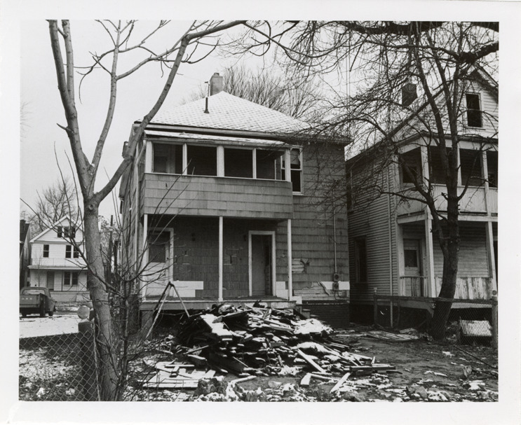 Favorite this☆ Abandoned house at 733-735 Coplin Description: Rear view of an abandoned house, possibly a duplex, located at 733-735 Coplin. Stamped on back: "Photography by D. Bruce Banta, Detroit." Handwritten on back: "#217, 733-35 Coplin." Details Resource ID: bh022968 Creator: Banta, D. Bruce Subject: Dwellings--Michigan--Detroit Abandoned houses--Michigan--Detroit Detroit Housing Commission--Archives Photographers--Michigan--Detroit Photographic prints Date Issued: Unknown year Format: 1 photographic print ; 4 x 5 in. Member of: Burton Historical Collection Filing Location: MS/Detroit Archives. Housing Commission. Coplin, photographs. 142:3 Rights: Physical rights are retained by DPL. Copyright is retained in accordance with U.S. copyright laws.