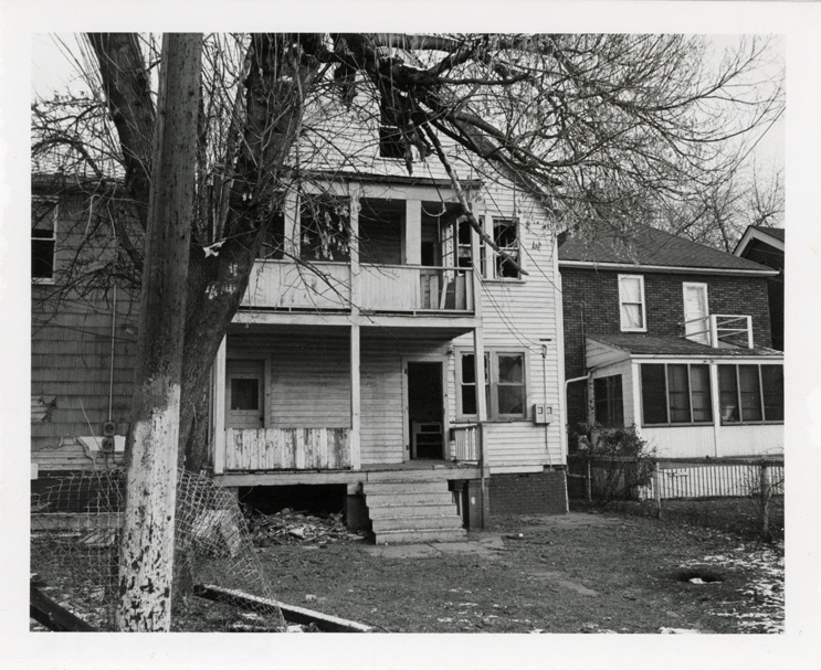 Favorite this☆ Abandoned house at 725-727 Coplin Description: Rear view of an abandoned two-story, wooden-frame house, possibly a duplex, located at 725-727 Coplin. Stamped on back: "Photography by D. Bruce Banta, Detroit." Handwritten on back: "#218, 725-27 Coplin." Details Resource ID: bh022970 Creator: Banta, D. Bruce Subject: Wooden-frame houses--Michigan--Detroit Abandoned houses--Michigan--Detroit Detroit Housing Commission--Archives Photographers--Michigan--Detroit Photographic prints Date Issued: Unknown year Format: 1 photographic print ; 4 x 5 in. Member of: Burton Historical Collection Filing Location: MS/Detroit Archives. Housing Commission. Coplin, photographs. 142:3 Rights: Physical rights are retained by DPL. Copyright is retained in accordance with U.S. copyright laws.