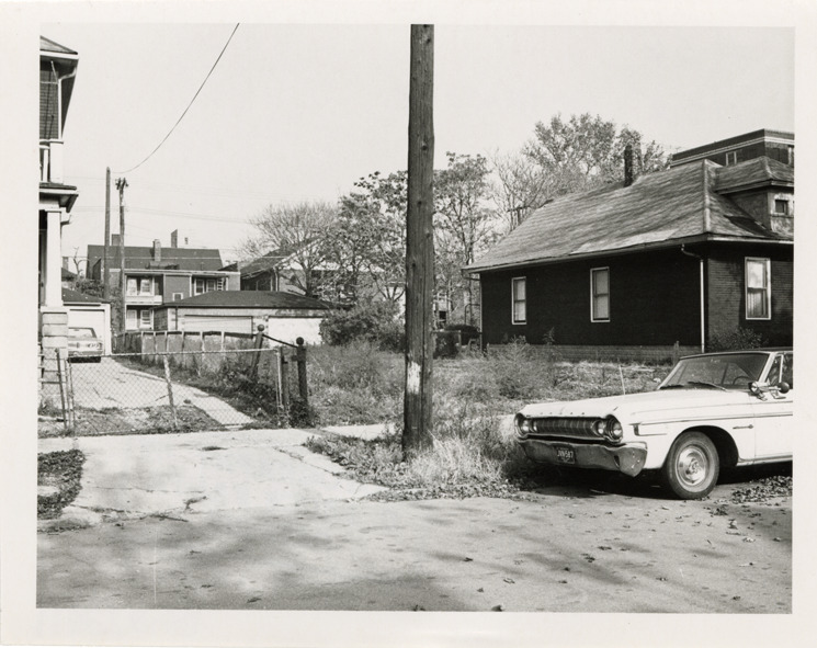 Favorite this☆ Vacant lot at 1152 Delaware Description: View of a vacant lot located at 1152 Delaware. Car parked in street; houses in background. Stamped on back: "Photography by D. Bruce Banta, Detroit." Handwritten on back: "#56, 1152 Delaware." Details Resource ID: bh023011 Creator: Banta, D. Bruce Subject: Vacant lands--Michigan--Detroit Dwellings--Michigan--Detroit Detroit Housing Commission--Archives Photographers--Michigan--Detroit Photographic prints Date Issued: Unknown year Format: 1 photographic print ; 4 x 5 in. Member of: Burton Historical Collection Filing Location: MS/Detroit Archives. Housing Commission. Delaware, photographs. 142:4 Rights: Physical rights are retained by DPL. Copyright is retained in accordance with U.S. copyright laws.