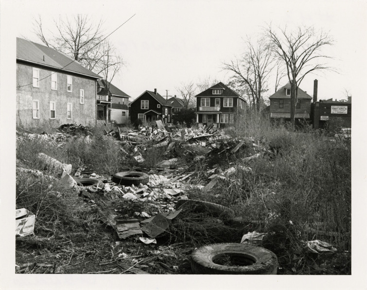 Favorite this☆ Vacant lot at 1752-1754 Delaware Description: View of a vacant lot, strewn with trash, located at 1752-1754 Delaware. Houses in background. Stamped on back: "Photography by D. Bruce Banta, Detroit." Handwritten on back: "#43, 1752-54 Delaware." Details Resource ID: bh023026 Creator: Banta, D. Bruce Subject: Vacant lands--Michigan--Detroit Refuse and refuse disposal--Michigan--Detroit Dwellings--Michigan--Detroit Detroit Housing Commission--Archives Photographers--Michigan--Detroit Photographic prints Date Issued: Unknown year Format: 1 photographic print ; 4 x 5 in. Member of: Burton Historical Collection Filing Location: MS/Detroit Archives. Housing Commission. Delaware, photographs. 142:4 Rights: Physical rights are retained by DPL. Copyright is retained in accordance with U.S. copyright laws.