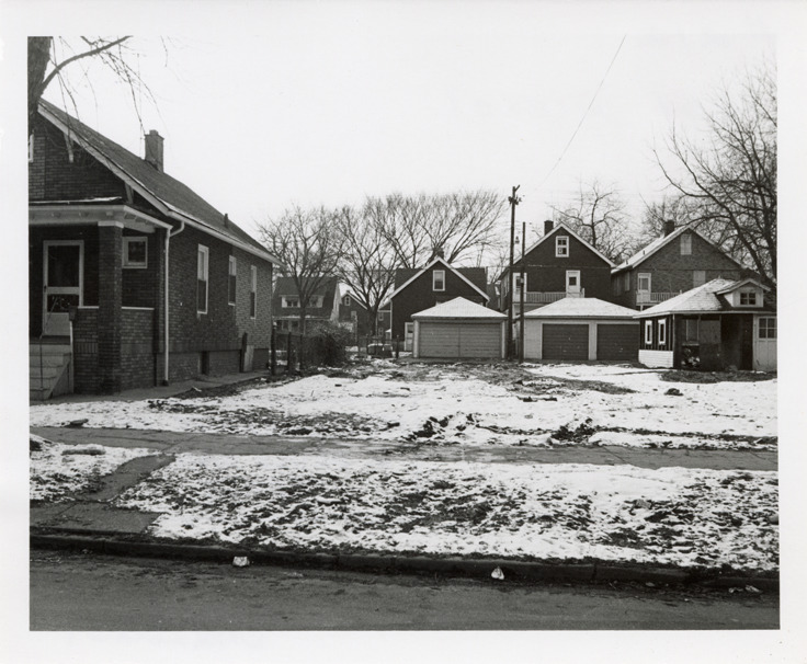 Favorite this☆ Vacant lot at 601 Drexel Description: View of a snow-covered vacant lot located at 601 Drexel. Houses in background. Stamped on back: "Photography by D. Bruce Banta, Detroit." Handwritten on back: "#212, 601 Drexel." Details Resource ID: bh023054 Creator: Banta, D. Bruce Subject: Vacant lands--Michigan--Detroit Dwellings--Michigan--Detroit Detroit Housing Commission--Archives Photographers--Michigan--Detroit Photographic prints Date Issued: Unknown year Format: 1 photographic print ; 4 x 5 in. Member of: Burton Historical Collection Filing Location: MS/Detroit Archives. Housing Commission. Drexel, photographs. 142:5 Rights: Physical rights are retained by DPL. Copyright is retained in accordance with U.S. copyright laws.