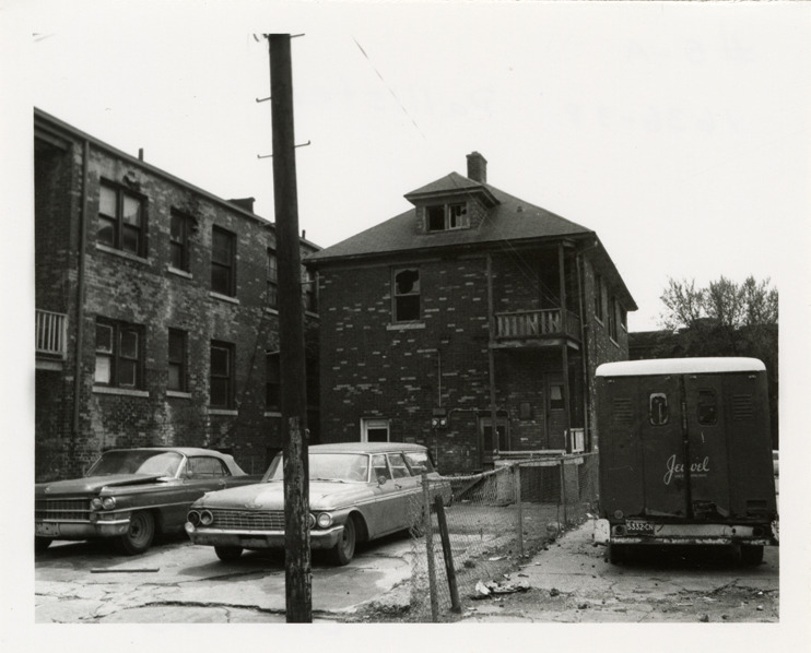 Favorite this☆ House at 1636-1638 Pallister Description: Rear view of a two-story house located at 1636-1638 Pallister. Cars are parked behind house. Stamped on back: "Photography by D. Bruce Banta, Detroit." Handwritten on back: "#5-A, 1636-38 Pallister." Details Resource ID: bh023123 Creator: Banta, D. Bruce Subject: Dwellings--Michigan--Detroit Automobiles--Michigan--Detroit Detroit Housing Commission--Archives Photographers--Michigan--Detroit Photographic prints Date Issued: Unknown year Format: 1 photographic print ; 4 x 5 in. Member of: Burton Historical Collection Filing Location: MS/Detroit Archives. Housing Commission. Pallister, photographs. 142:16 Rights: Physical rights are retained by DPL. Copyright is retained in accordance with U.S. copyright laws.