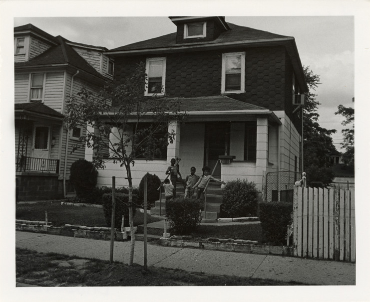 Favorite this☆ House at 1746 Pallister Description: View of a two-story house with covered entry porch house located at 1746 Pallister. Three boys and a girl pose on porch. Stamped on back: "Photography by D. Bruce Banta, Detroit." Handwritten on back: "#32, 1746 Pallister." Details Resource ID: bh023136 Creator: Banta, D. Bruce Subject: Dwellings--Michigan--Detroit African American children--Michigan--Detroit Detroit Housing Commission--Archives Photographers--Michigan--Detroit Photographic prints Date Issued: Unknown year Format: 1 photographic print ; 4 x 5 in. Member of: Burton Historical Collection Filing Location: MS/Detroit Archives. Housing Commission. Pallister, photographs. 142:16 Rights: Physical rights are retained by DPL. Copyright is retained in accordance with U.S. copyright laws.