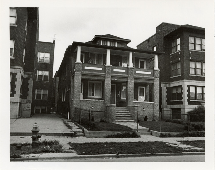 View of a two-story brick house, possibly a duplex, located at 1990 Philadelphia. Stamped on back: "Photography by D. Bruce Banta, Detroit." Handwritten on back: "#11, 1990 Philadelphia."