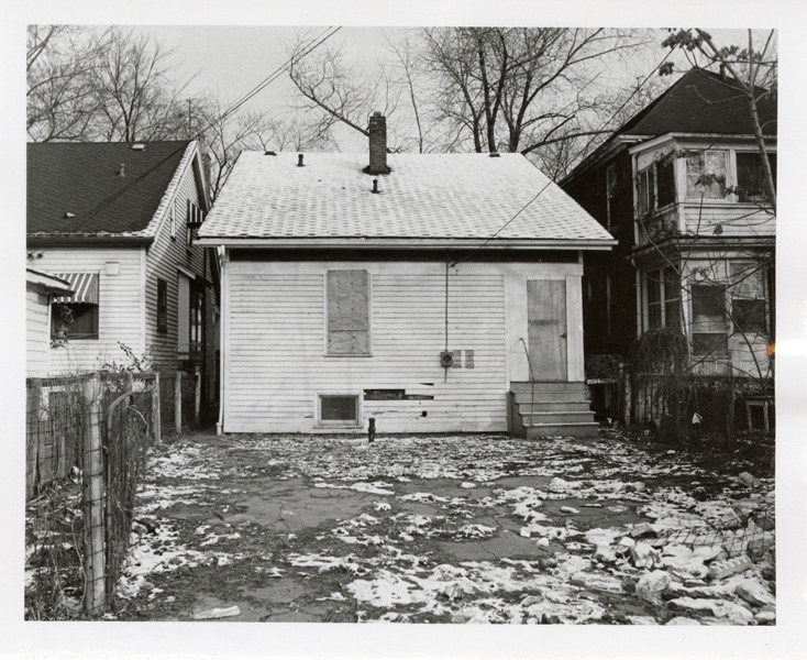 Rear view of a wooden-frame house located at 787 Piper. Stamped on back: "Photography by D. Bruce Banta, Detroit." Handwritten on back: "#225, 787 Piper."