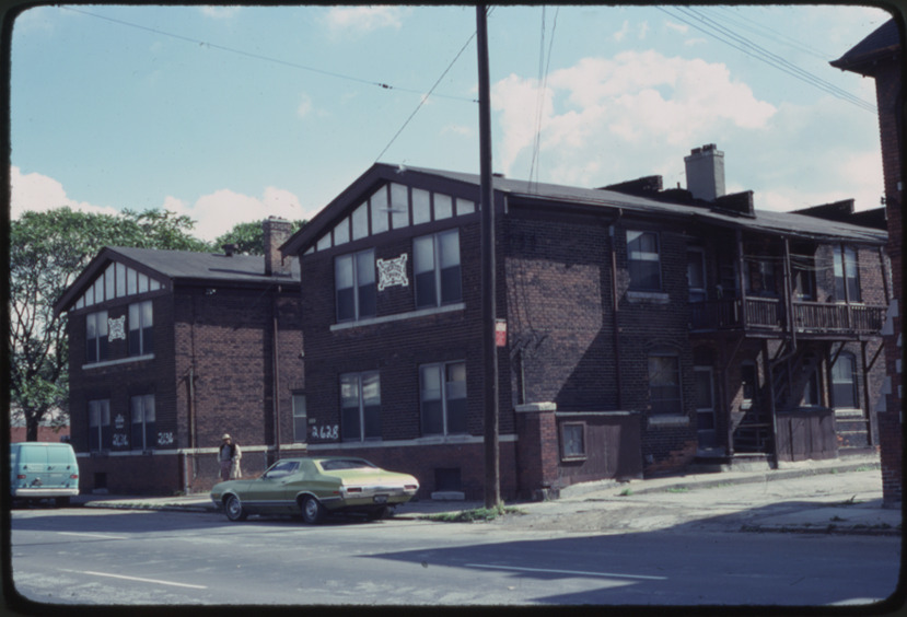Favorite this☆ Viertel Court apartments at 2628 Forest Description: View of the Viertel Court apartment buildings located at 2628 Forest. Handwritten on mount: "2628 Forest. Apt. court." Details Resource ID: bh023243 Subject: Apartment houses--Michigan--Detroit Automobiles--Michigan--Detroit Slides Date Issued: 1979-10 Format: 1 slide in cardboard mount : col. ; 2 x 2 in. Member of: Burton Historical Collection Negative Number: Slide no. 2469 Rights: Physical rights are retained by DPL. Copyright is retained in accordance with U.S. copyright laws.