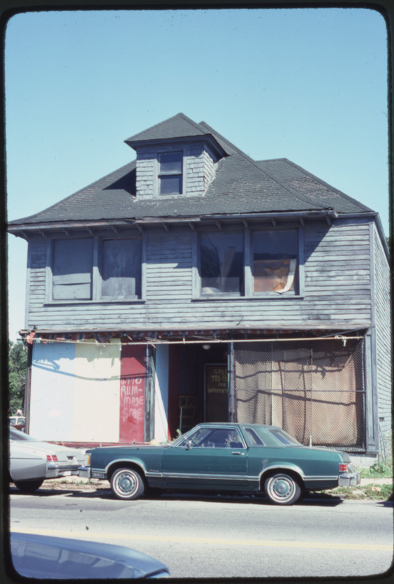 Favorite this☆ Abandoned commercial building at 4770 Chene Description: View of an abandoned wooden-frame commercial building located at 4770 Chene. Cars parked in street. Handwritten on mount: "4770 Chene." Details Resource ID: bh023261 Subject: Commercial buildings--Michigan--Detroit Abandoned buildings--Michigan--Detroit Automobiles--Michigan--Detroit Slides Date Issued: 1979-09 Format: 1 slide in cardboard mount : col. ; 2 x 2 in. Member of: Burton Historical Collection Negative Number: Slide no. 2487 Rights: Physical rights are retained by DPL. Copyright is retained in accordance with U.S. copyright laws.