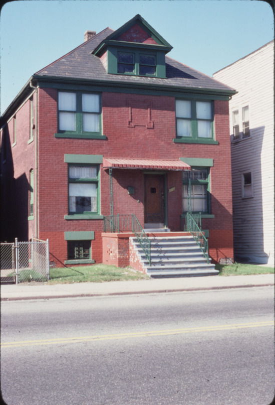 View of a two-story brick house belonging to Dr. I. Siwka located at 5821 Chene. Handwritten on mount: "Dr. I. Siwka residence. 5821 Chene."