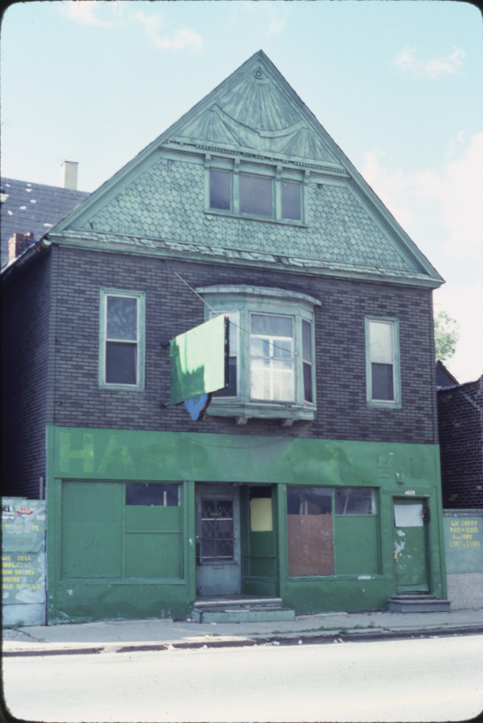 Favorite this☆ Commercial building at 4607 Chene Description: View of a two-story commercial building with simulated brick siding and faded "Hardware" sign located at 4607 Chene. Handwritten on mount: "4607 Chene." Details Resource ID: bh023269 Subject: Commercial buildings--Michigan--Detroit Slides Date Issued: 1979-10 Format: 1 slide in plastic mount : col. ; 2 x 2 in. Member of: Burton Historical Collection Negative Number: Slide no. 2495 Rights: Physical rights are retained by DPL. Copyright is retained in accordance with U.S. copyright laws.