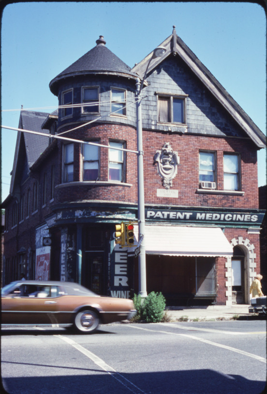 Favorite this☆ Drugstore at 4670 Chene Description: View of a drugstore located in a two-story brick building with turret at 4670 Chene. Sign on building reads: "Patent medicines." Handwritten on mount: "4670 Chene." Details Resource ID: bh023330 Subject: Drugstores--Michigan--Detroit Slides Date Issued: 1979-09 Format: 1 slide in cardboard mount : col. ; 2 x 2 in. Member of: Burton Historical Collection Negative Number: Slide no. 2556 Rights: Physical rights are retained by DPL. Copyright is retained in accordance with U.S. copyright laws.
