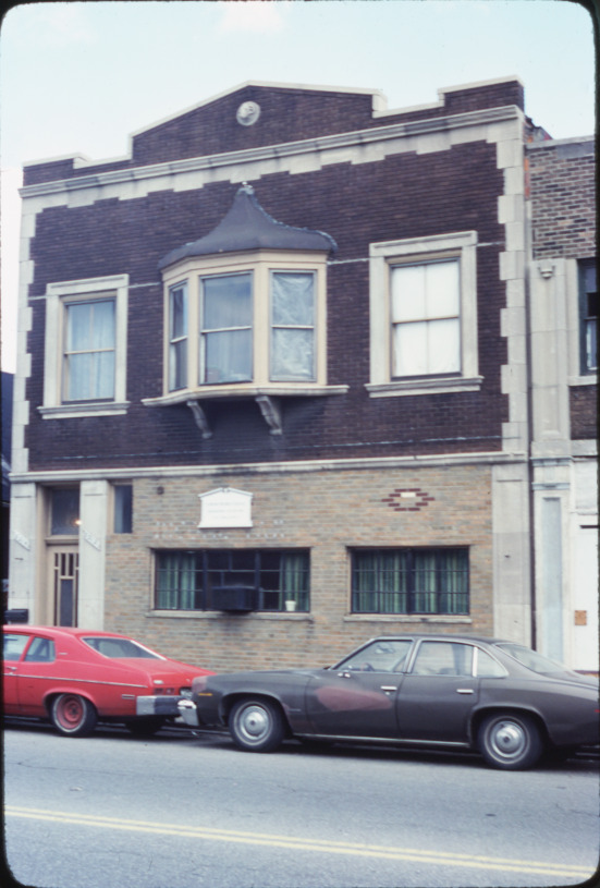 View of a two-story, brick commercial building located at 6212-6214 Chene. Cars are parked in street. Handwritten on mount: "6212-14 Chene."