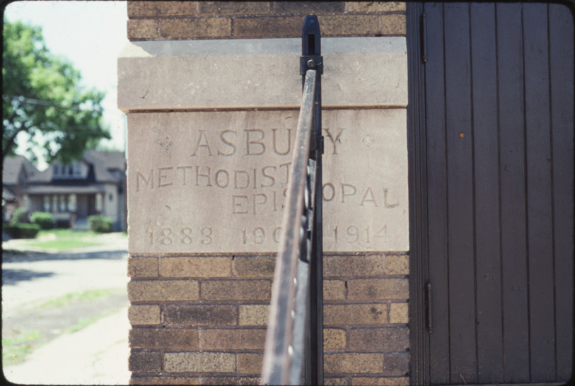 Cornerstone of Asbury Methodist Episcopal Church at 2141 East Grand Boulevard