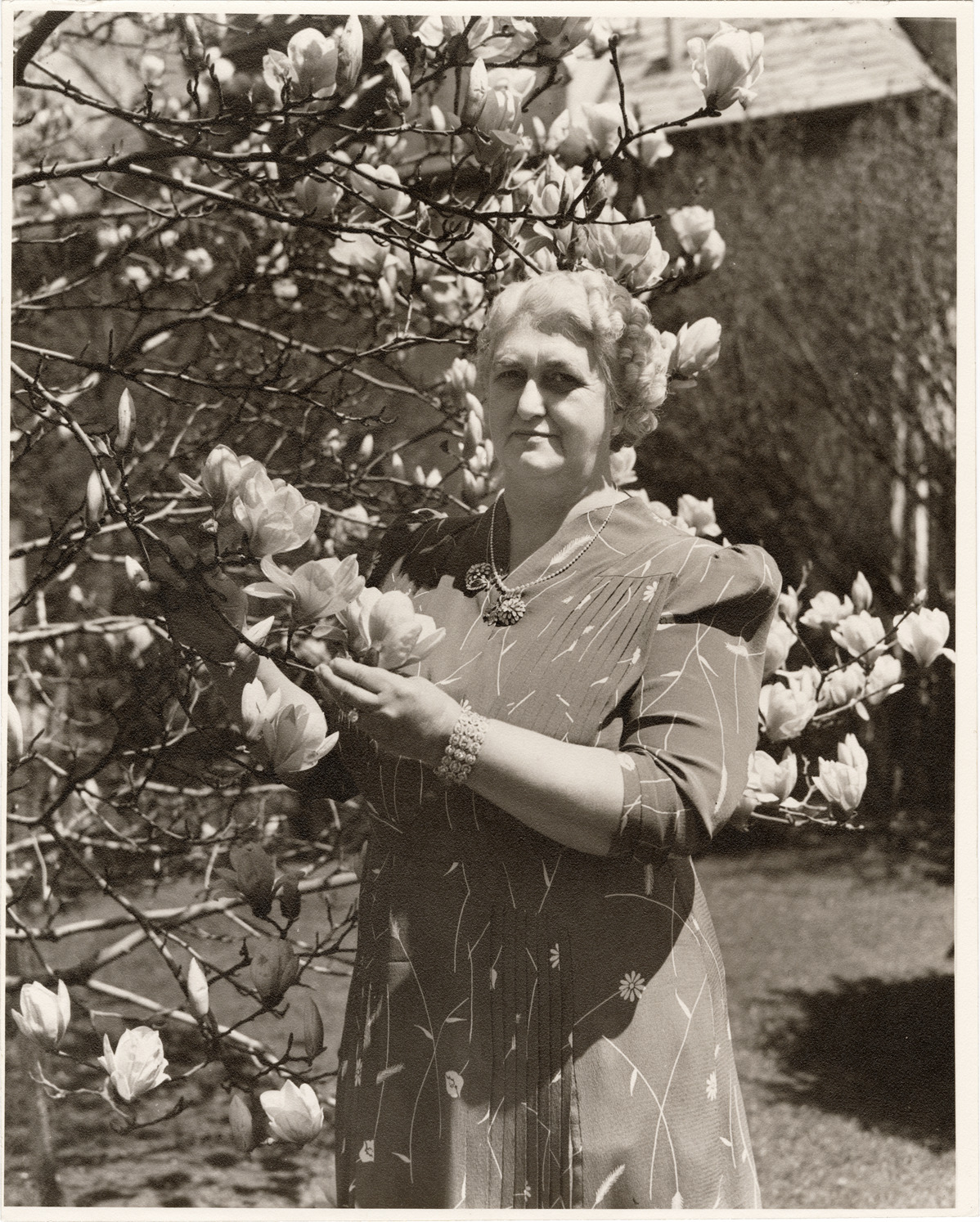Portrait of Clara E. Knudsen, wife of William S. Knudsen. Handwritten on back: "Mrs. W.S. Knudsen. Knudsen house, 1501 Balmoral, Detroit."