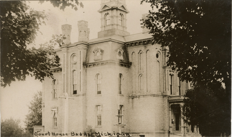 Favorite this☆ Courthouse, Bad Axe, Michigan Description: View of the courthouse in Bad Axe, Michigan. Printed on front: "Court house, Bad Axe, Michigan." Printed on back: "The B.H. Grimes Co., Frankfort, Ind." Details Resource ID: bh023451 Subject: Courthouses--Michigan--Bad Axe Photographic prints Postcards Publisher: B.H. Grimes Co. Date Issued: Unknown year Format: 1 postcard ; 3.5 x 5.5 in. Member of: Burton Historical Collection Filing Location: M/Localities-Bad Axe Rights: Physical rights are retained by DPL. Copyright is retained in accordance with U.S. copyright laws.
