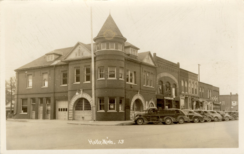 Favorite this☆ Fire station, Holly, Michigan Description: View of the fire station in Holly, Michigan. Row of cars parked along curb. Printed on front: "Holly, Mich." Details Resource ID: bh023542 Subject: Fire stations--Michigan--Holly Automobiles--Michigan--Holly Photographic prints Postcards Date Issued: Unknown year Format: 1 postcard ; 3.5 x 5.5 in. Member of: Burton Historical Collection Clarence Faber Collection Filing Location: M/Localities-Holly Rights: Physical rights are retained by DPL. Copyright is retained in accordance with U.S. copyright laws.