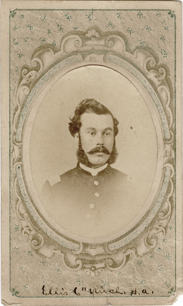 Favorite this☆ James A. Ellis Description: Portrait of James A. Ellis in military uniform. Handwritten on front: "Ellis. 6" Mich. H.A." Details Resource ID: bh023950 Subject: United States. Army. Michigan Artillery Regiment, 6th (1863-1865) Soldiers--Michigan Carte de visite photographs Photographic prints Date Issued: 1863 to 1865 Format: 1 carte de visite ; 4 x 2.5 in. Member of: Burton Historical Collection Filing Location: MS/Beardsley, Edward A. Rights: Physical rights are retained by DPL. Copyright is retained in accordance with U.S. copyright laws.