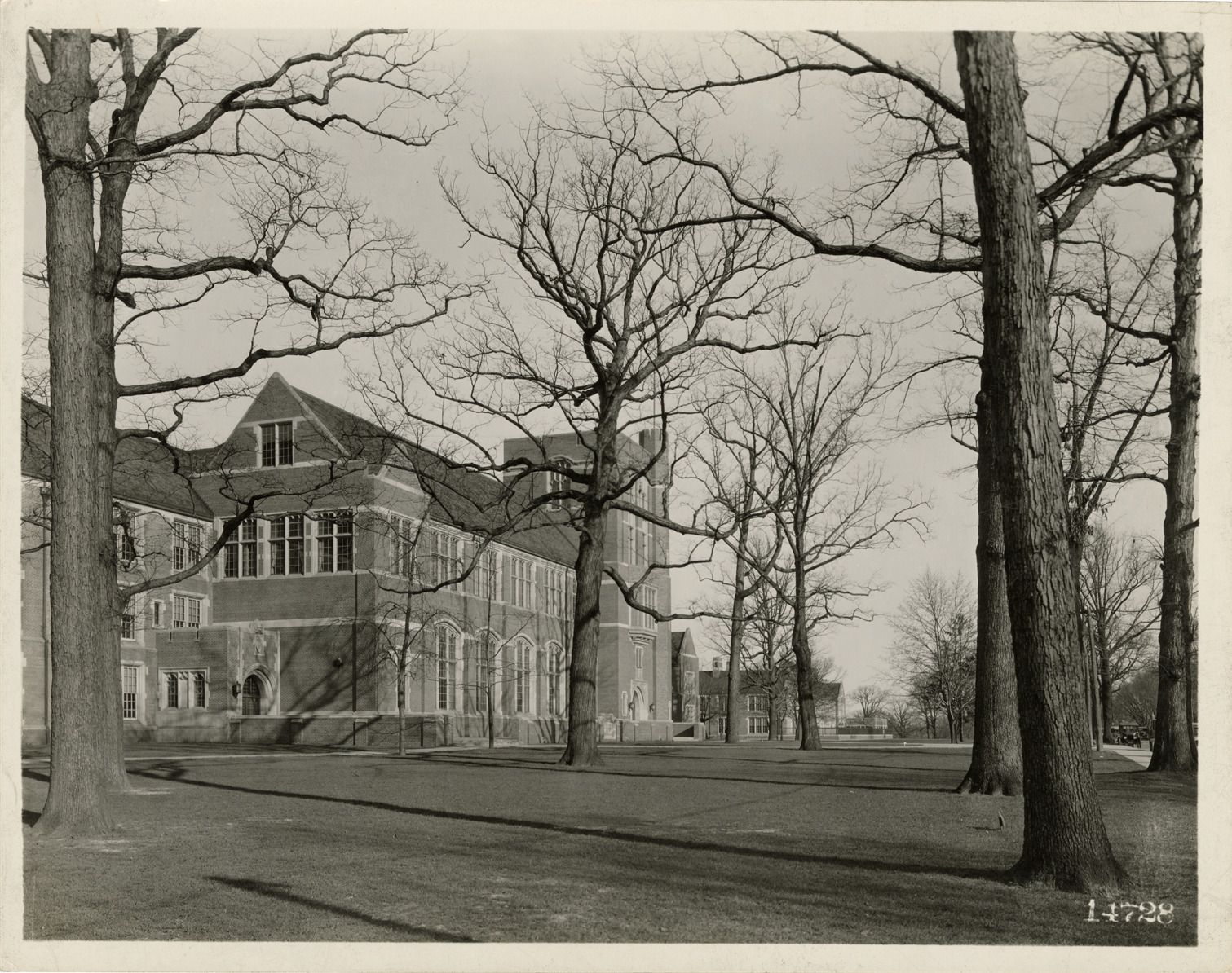 View of the Central High School in Flint, Michigan, designed by architects Malcomson and Higginbotham. Stamped on back: "A.F. Crooks, commercial photographer, Flint, Michigan." Handwritten on back: "Central High School, Flint, Mich. Malcomson & Higginbotham, architects."