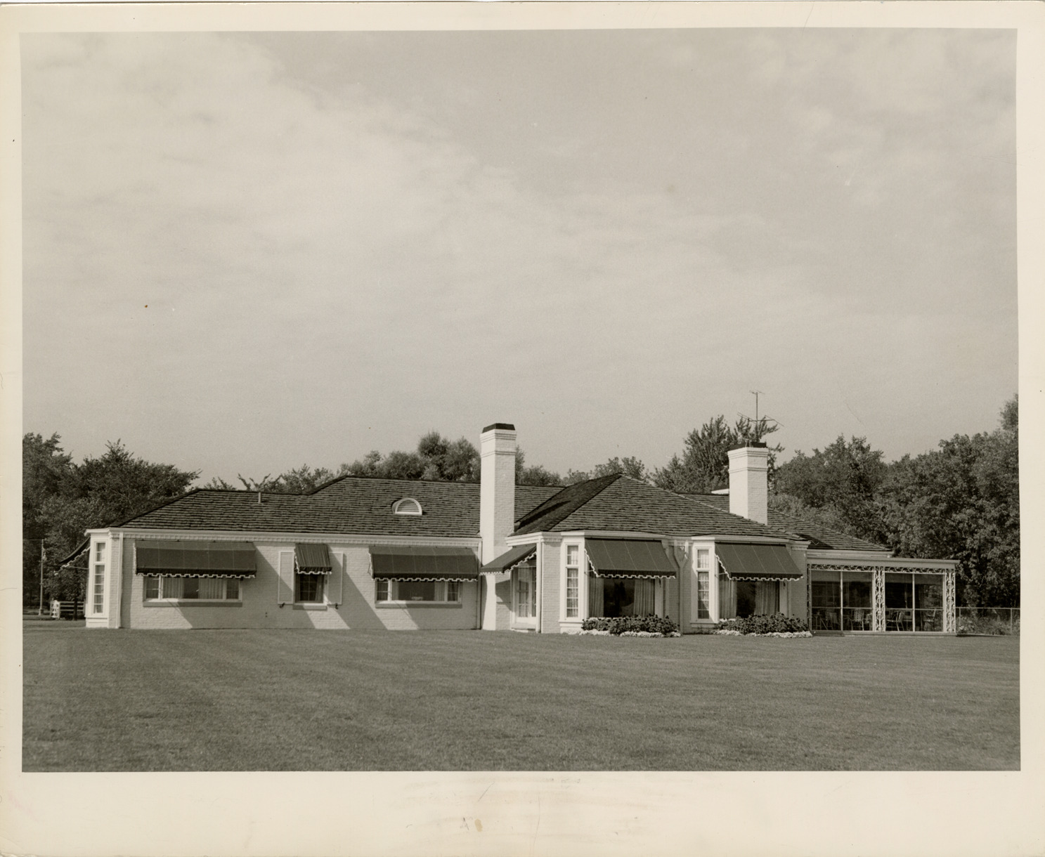 Rear view of a house located on Lake Shore Rd. in Grosse Pointe Shores, Michigan. Stamped on back: "William E. Bradley, 14361 Royal Grand Ave., Detroit 23, Mich. KE. 2-4450."
