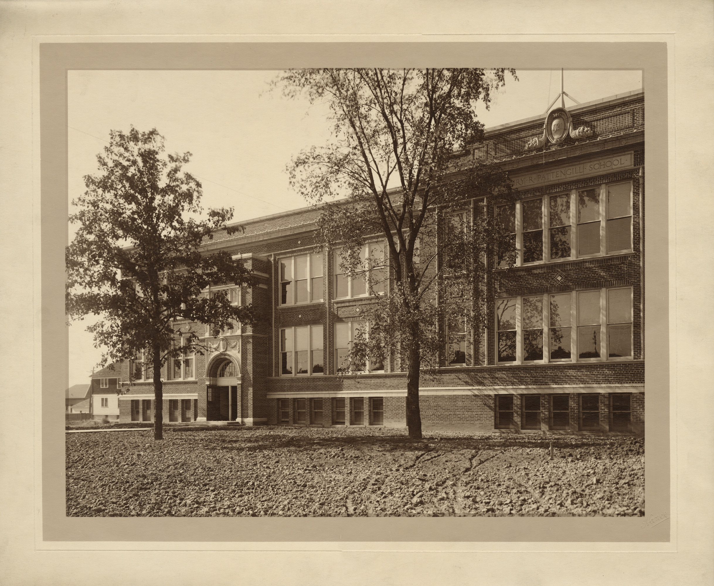 View of the Henry R. Pattengill School. Embossed on front: "Hance." Handwritten on back: "Pattengill School. Malcomson & Higginbotham, architects."