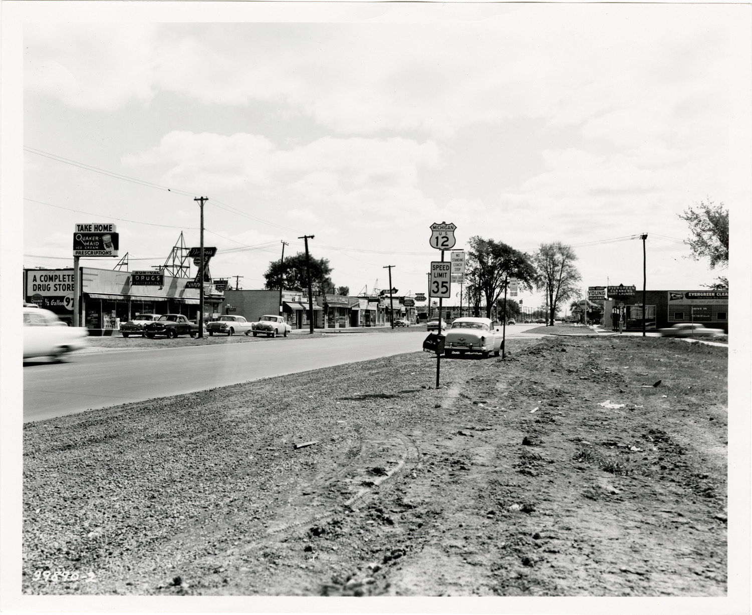 Favorite this☆ Commercial buildings on Plymouth Road Description: View of commercial buildings on Plymouth Rd., near Evergreen. Cars parked in front of businesses; sign for Michigan U.S. 12 in foreground. Handwritten on back: "Plymouth Rd. & Evergreen area, 5-8-55." Details Resource ID: bh024159 Subject: Streets--Michigan--Detroit United States Highway 12 Commercial buildings--Michigan--Detroit Automobiles--Michigan--Detroit Photographic prints Date Issued: 1955-05-08 Format: 1 photographic print ; 8 x 10 in. Member of: Burton Historical Collection Filing Location: D/Streets-Plymouth Rights: Physical rights are retained by DPL. Copyright is retained in accordance with U.S. copyright laws.