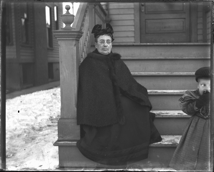 Favorite this☆ Woman posing on steps Description: View of a woman, wearing a cape, posing on steps in front of wooden-frame house. Child on right. Handwritten on sleeve: "Elderly woman & child." Details Resource ID: bh024205 Subject: Women--Michigan--Detroit Children--Michigan--Detroit Glass negatives Date Issued: Unknown year Format: 1 negative : glass ; 4 x 5 in. Member of: Burton Historical Collection Filing Location: Ellis Collection, Box 4 Rights: Physical rights are retained by DPL. Copyright is retained in accordance with U.S. copyright laws.