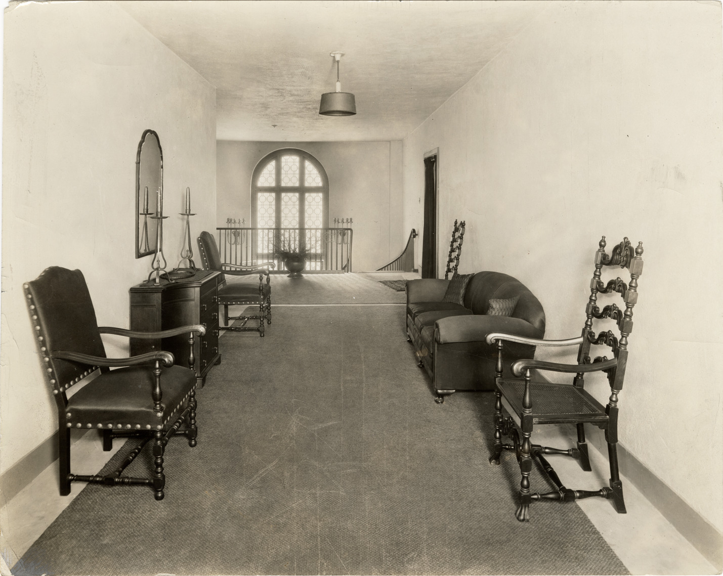 Favorite this☆ Hallway, Women's City Club of Detroit Description: View of a hallway at the top of stairs in the Women's City Club of Detroit building. Area is furnished with chairs, sofa, side table and mirror. Handwritten on back: "Upper hall." Details Resource ID: bh024295 Subject: Corridors--Michigan--Detroit Chairs--Michigan--Detroit Sofas--Michigan--Detroit Women's City Club (Detroit, Mich.) Clubhouses--Michigan--Detroit Women--Societies and clubs Women's City Club (Detroit, Mich.)--Archives Photographic prints Date Issued: Unknown year Format: 1 photographic print ; 7.5 x 9.5 in. Member of: Burton Historical Collection Filing Location: MS/Women's City Club of Detroit, 4:2 Rights: Physical rights are retained by DPL. Copyright is retained in accordance with U.S. copyright laws.