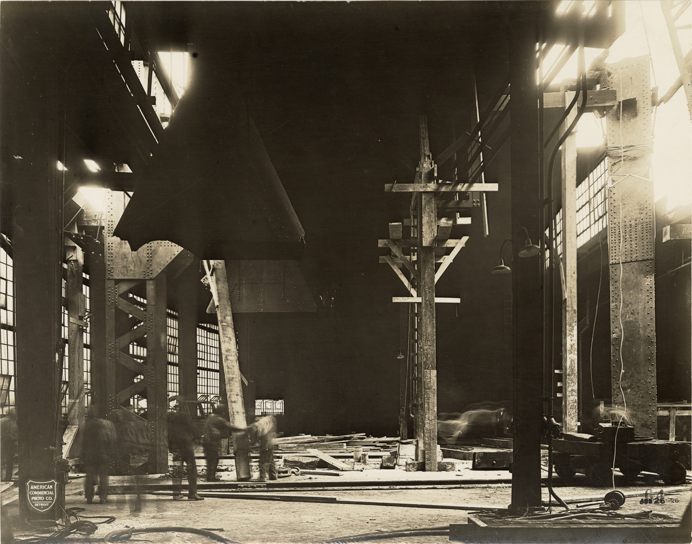 Favorite this☆ Factory interior, Ambassador Bridge during construction Description: View of a workers in a factory interior, Ambassador Bridge during construction. Printed on front: "American Commercial Photo Co., Detroit. 64, Jun 26, '28." Details Resource ID: bh024376 Creator: American Commercial Photo Co. Subject: Ambassador Bridge (Detroit, Mich., and Windsor, Ont.) Suspension bridges--Design and construction Factories Construction workers McClintic-Marshall Construction Company Photographers--Michigan--Detroit Photographic prints Date Issued: 1928-06-26 Format: 1 photographic print mounted on fabric ; 7.5 x 9.5 in. Member of: Burton Historical Collection Filing Location: D/Bridges-Ambassador-Construction-June 1928 Rights: Physical rights are retained by DPL. Copyright is retained in accordance with U.S. copyright laws.