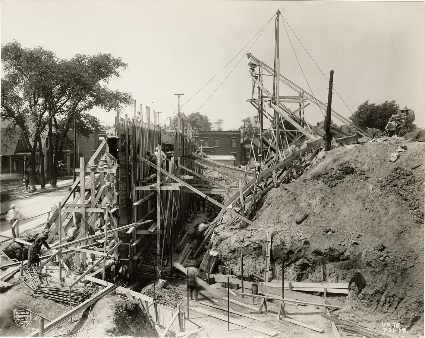 Favorite this☆ Construction site, Ambassador Bridge Description: View of workers on a construction site for the Ambassador Bridge. Printed on front: "American Commercial Photo Co., Detroit 1928. U.S. 75, 7-31-28." Details Resource ID: bh024394 Creator: American Commercial Photo Co. Subject: Reinforcing bars Construction workers Ambassador Bridge (Detroit, Mich., and Windsor, Ont.) Suspension bridges--Design and construction McClintic-Marshall Construction Company Photographers--Michigan--Detroit Photographic prints Date Issued: 1928-07-31 Format: 1 photographic print mounted on fabric ; 7.5 x 9.5 in. Member of: Burton Historical Collection Filing Location: D/Bridges-Ambassador-Construction-July 1928 Rights: Physical rights are retained by DPL. Copyright is retained in accordance with U.S. copyright laws.