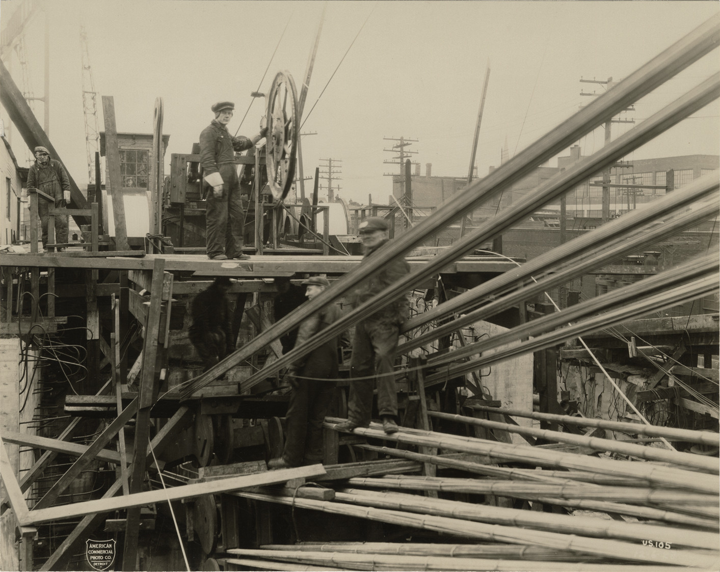Favorite this☆ Workers posing with cables, Ambassador Bridge during construction Description: View of workers posing with cables, Ambassador Bridge during construction. Printed on front: "American Commercial Photo Co., Detroit. U.S. 105, 12-6-28." Details Resource ID: bh024454 Creator: American Commercial Photo Co. Subject: Construction workers Ambassador Bridge (Detroit, Mich., and Windsor, Ont.) Suspension bridges--Design and construction McClintic-Marshall Construction Company Photographers--Michigan--Detroit Photographic prints Date Issued: 1928-12-06 Format: 1 photographic print mounted on fabric ; 7.5 x 9.5 in. Member of: Burton Historical Collection Filing Location: D/Bridges-Ambassador-Construction-December 1928 Rights: Physical rights are retained by DPL. Copyright is retained in accordance with U.S. copyright laws.