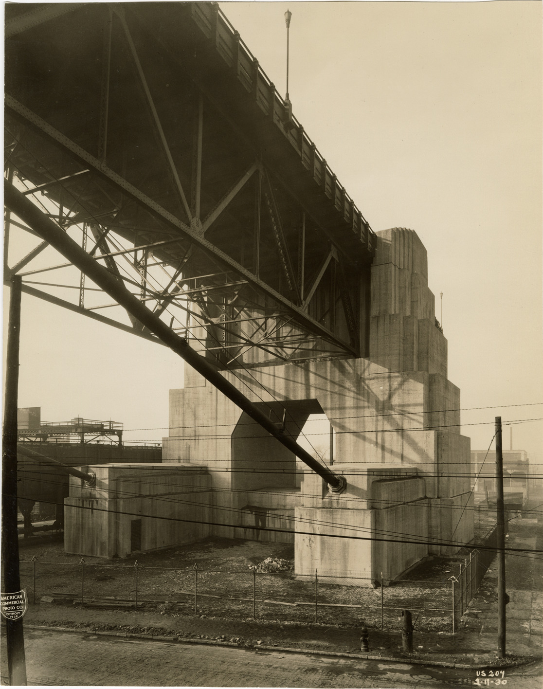 View of an anchorage for the Ambassador Bridge. Printed on front: "American Commercial Photo Co., Detroit, 1928 [sic]. U.S. 204, 2-11-30."