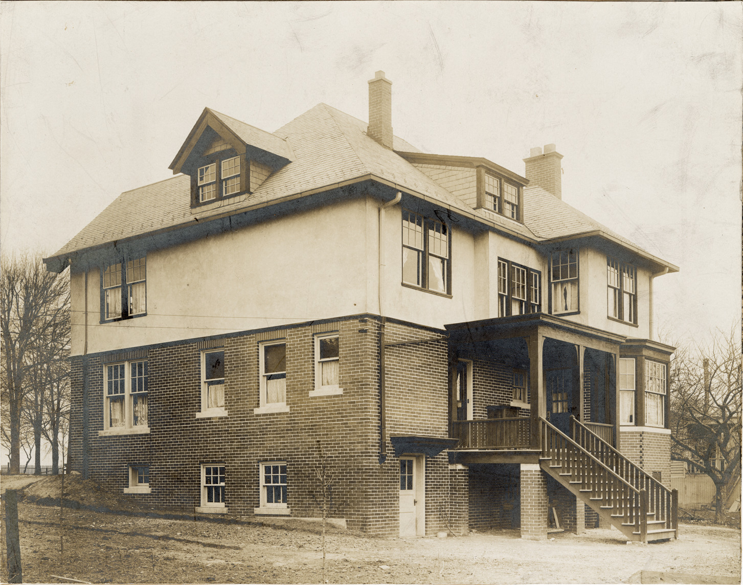 Favorite this☆ Herman Kreit residence, Grosse Pointe, Michigan Description: Side and rear view of the Herman Kreit residence, a two-story brick and stucco home in Grosse Pointe, Michigan. Handwritten on back: "Dr. Herman Kreit residence, 16004 E. Jefferson, Grosse Pointe, Mich." Details Resource ID: bh024587 Subject: Dwellings--Michigan--Grosse Pointe Architecture, Domestic--Michigan--Grosse Pointe Photographic prints Date Issued: Unknown year Format: 1 photographic print mounted on stock ; 7.5 x 9.75 in. Member of: Burton Historical Collection Filing Location: M/Localities-Grosse Pointe-Historic houses-Kreit, Herman Rights: Physical rights are retained by DPL. Copyright is retained in accordance with U.S. copyright laws.