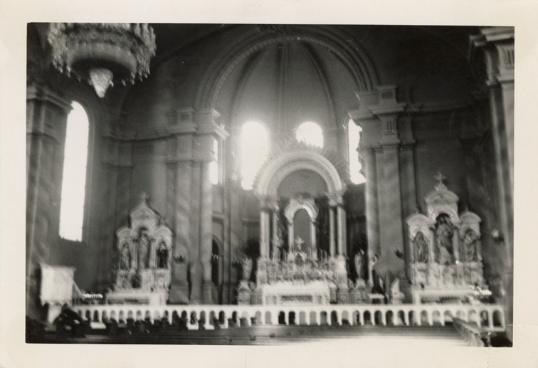 Favorite this☆ Interior, St. George Lithuanian Church Description: View of the interior of the St. George Lithuanian Church. Altar in background. Handwritten on back: "St. George, betw. Westminster and Cardoni. Lithuanian Catholic. Gray glass windows, revival of Renaissance." Details Resource ID: bh024655 Subject: Catholic church buildings--Michigan--Detroit Altars--Michigan--Detroit Lithuanian American Catholics Photographic prints Date Issued: Unknown year Format: 1 photographic print ; 3.5 x 5 in. Member of: Burton Historical Collection Filing Location: D/Churches-Roman Catholic-St. George (Lithuanian) Rights: Physical rights are retained by DPL. Copyright is retained in accordance with U.S. copyright laws.