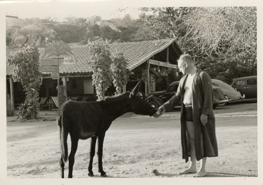 George F. Pierrot feeding donkey, Acapulco, Mexico