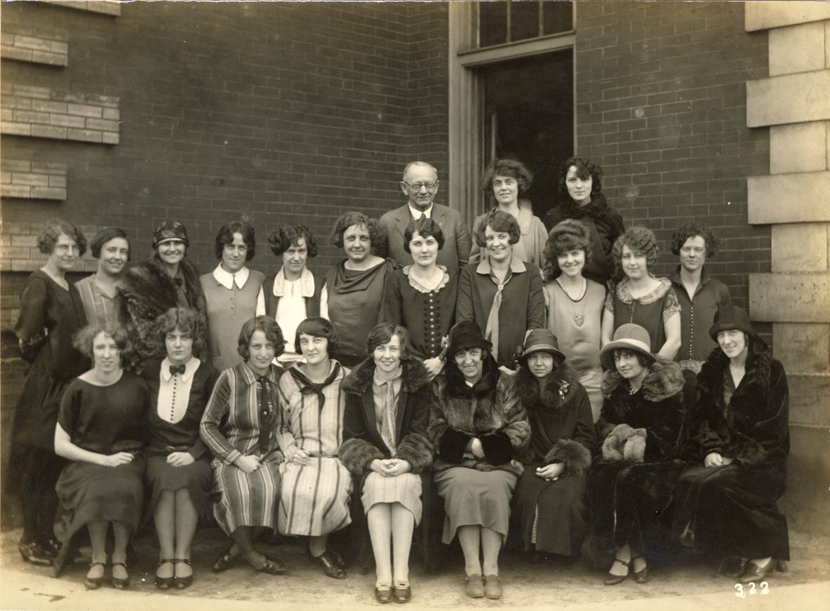Favorite this☆ Teachers posing in front of the Hugh Cary School Description: View of teachers posing in front of the Hugh Cary School. Woman sitting in center of front row is identified as Winifred Marr, of Wyandotte, Michigan. Handwritten on back: "Winifred Marr, of Wyandotte, Michigan, in center of front row." Details Resource ID: bh024758 Subject: Elementary school teachers--Michigan--Detroit Photographic prints Date Issued: 1923 to 1925 Format: 1 photographic print mounted on fabric ; 6 x 8 in. Member of: Burton Historical Collection Filing Location: D/Schools-Cary, Hugh Rights: Physical rights are retained by DPL. Copyright is retained in accordance with U.S. copyright laws.