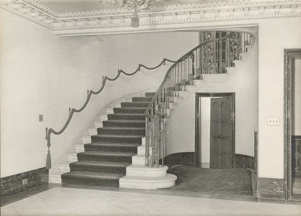 Favorite this☆ Staircase, Adams Castle, Bloomfield Hills, Michigan Description: View of staircase at Adams Castle, located on 900 Adams Castle Dr. in Bloomfield Hills, Michigan. Adams Castle was built in 1927, designed by architect Richard Marr. Details Resource ID: bh024775 Subject: Castles--Michigan--Bloomfield Hills Staircases--Michigan--Bloomfield Hills Stairs--Michigan--Bloomfield Hills Architecture, Tudor--Michigan--Bloomfield Hills Marr, Richard, 1886-1946 Photographic prints Date Issued: 1950 (year approximate) Format: 1 photographic print mounted on stock ; image 5 x 7 in. Member of: Burton Historical Collection Filing Location: M/Localities--Bloomfield Hills--Historic houses--Adams Castle Note (Content): bh024776 on verso. Rights: Physical rights are retained by DPL. Copyright is retained in accordance with U.S. copyright laws.