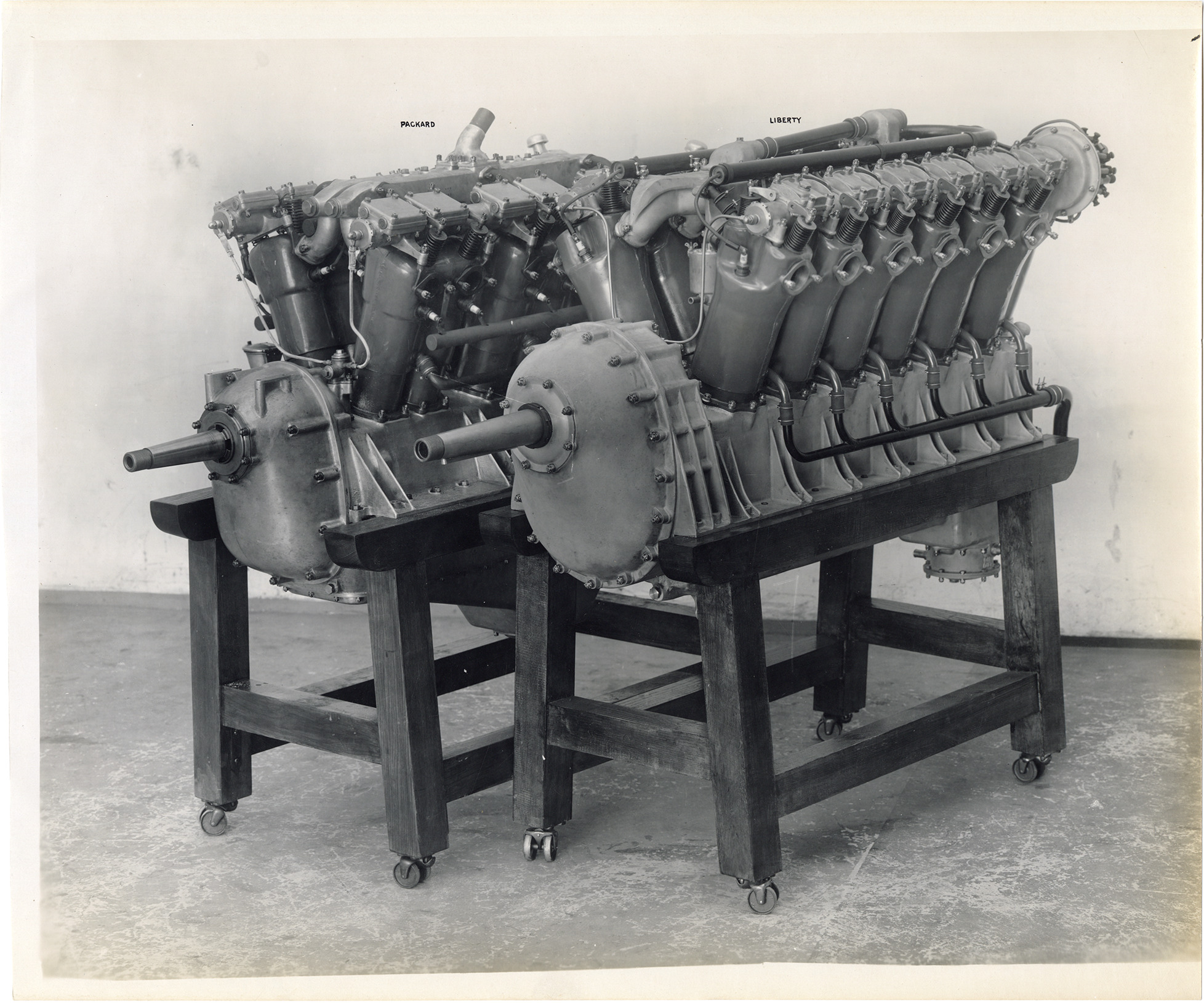 Favorite this☆ Packard airplane engine and Liberty airplane engine Description: View of a Packard airplane engine and a Liberty airplane engine, displayed on stands. Printed on front: "Packard, Liberty." Details Resource ID: bh024814 Subject: Liberty engines Packard Motor Car Company Airplanes--Motors Photographic prints Date Issued: 1918 Format: 1 photographic print ; 11 x 13 in. Member of: Burton Historical Collection Filing Location: LD/Airplanes-Engines-Packard Rights: Physical rights are retained by DPL. Copyright is retained in accordance with U.S. copyright laws.