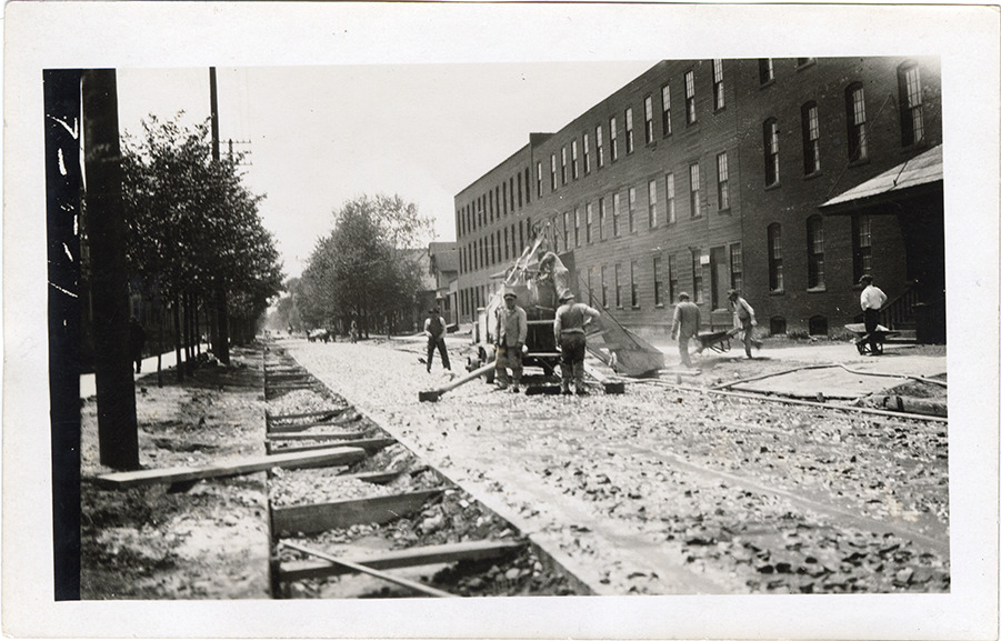 Workers with grouting machine on Palmer, Detroit Street Railway construction