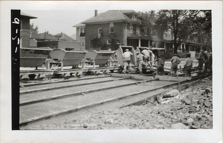 Workers laying concrete on Owen, Detroit Street Railway construction