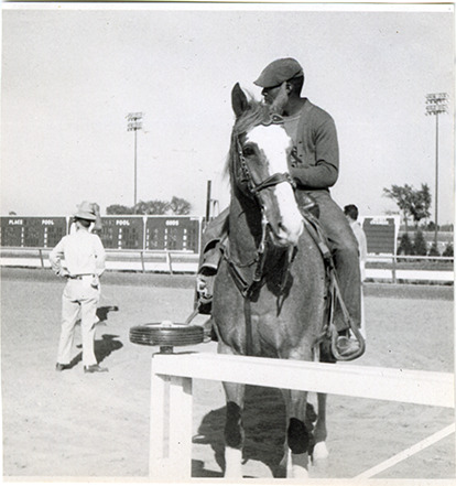 Part of an album of photographs taken by Cathie Monticelli. Inscribed inside front cover: "My book, at the race track, 1952 by Cathie Monticelli, 1426 Pearson Ave., Ferndale 20, Michigan."
