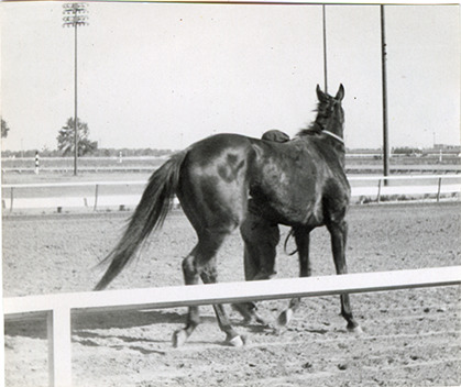 Part of an album of photographs taken by Cathie Monticelli. Inscribed inside front cover: "My book, at the race track, 1952 by Cathie Monticelli, 1426 Pearson Ave., Ferndale 20, Michigan."