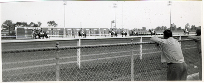 Part of an album of photographs taken by Cathie Monticelli. Inscribed inside front cover: "My book, at the race track, 1952 by Cathie Monticelli, 1426 Pearson Ave., Ferndale 20, Michigan."