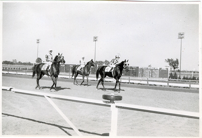 Part of an album of photographs taken by Cathie Monticelli. Inscribed inside front cover: "My book, at the race track, 1952 by Cathie Monticelli, 1426 Pearson Ave., Ferndale 20, Michigan."